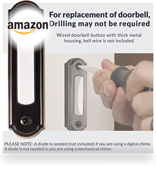 Worried about compatibility? Don’t be. This wired doorbell plays nice with most standard systems out there. Whether you’ve got an old-school chime or a digital one that plays your favorite tune (just grab a diode separately for those), it’s a breeze to set up. The holes are already spaced about 2.10 inches apart, so you might not even need to drill. Swap out your old, cranky doorbell in minutes and get back to more important things—like deciding whether to answer the door.