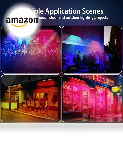But wait, there's more (because why not?). It syncs to music, has a timer because who remembers to turn off the lights, and boasts an IP65 waterproof rating—rain or shine, it's fine. Built like a tank with a die-cast aluminum body and tempered glass lens, it's ready to light up your life, year after year. Perfect for parties, shops, or just making your backyard the envy of the neighborhood.