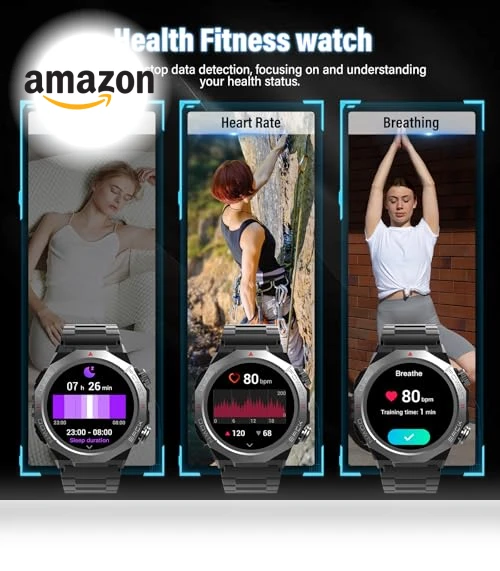 Ever wished your smartwatch could keep up with your no-holds-barred lifestyle? Meet the Military Smart Watch—it's like the Swiss Army knife of wearables, but way cooler. Built for guys who aren't afraid to get their hands dirty, it boasts a 1.39-inch HD display that's as crisp as your morning coffee. And with over 200 custom watch faces, you can switch up your style faster than you can say "time's up." Plus, stay in the loop with Bluetooth calls and notifications, because missing out is so last year. Oh, and it keeps tabs on your health with 24/7 heart rate and sleep tracking, because even tough guys need their beauty sleep.