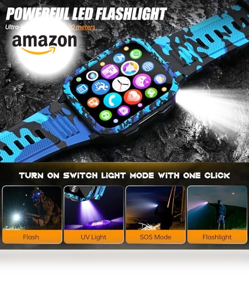LaNikar KT79 Military Smart Watch with Call, LED Flashlight, UV Light, Big Screen, Waterproof, Fitness Tracker: Military standard quality and 3ATM waterproof