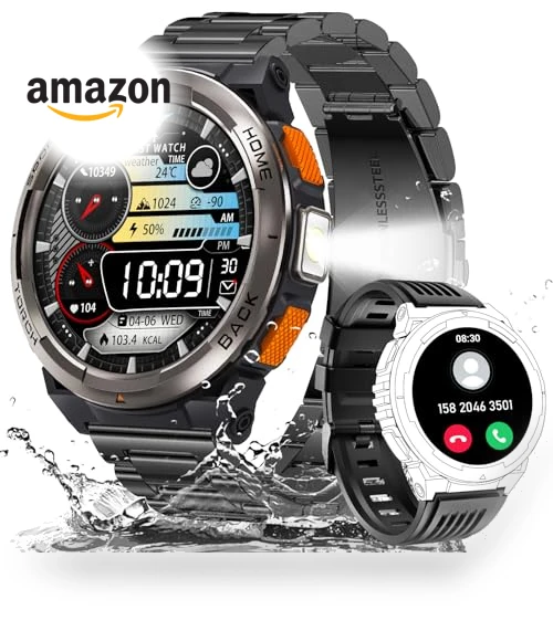 EIGIIS KE5 Military Smart Watch with Flashlight: 3ATM waterproof & LED flashlight