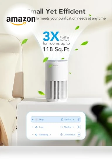 This little powerhouse doesn't just sit there looking pretty. With its dual-channel 360° air intake, it's like a vacuum for bad air, certified by the big names: Energy Star, ETL, FCC, and CA65. It'll tackle spaces up to 376 sqft, making sure you're breathing easy.
