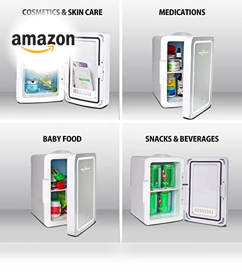 Koolatron CC06 Mini Fridge with Lighted Makeup Mirror - 6L Portable Cooler for Skincare & Cosmetics
