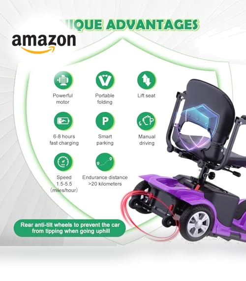 Meet the Mobility Scooter for Adults from SUNDERWELL—your ticket to freedom and hassle-free travel. Whether you're off to the shops, enjoying a leisurely park stroll, or joining the family for an outing, this scooter's got your back (and your legs). With a 24V 12AH detachable battery, it zips along at a top speed of 4.5 mph and won't quit on you for a good 15 miles on a single charge.
