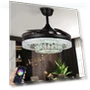 - 4 in 1 Chandelier Ceiling Fan with retractable fan, 3 color and 7 dimmable light, Crystal Chandeliers, and Bluetooth speakers