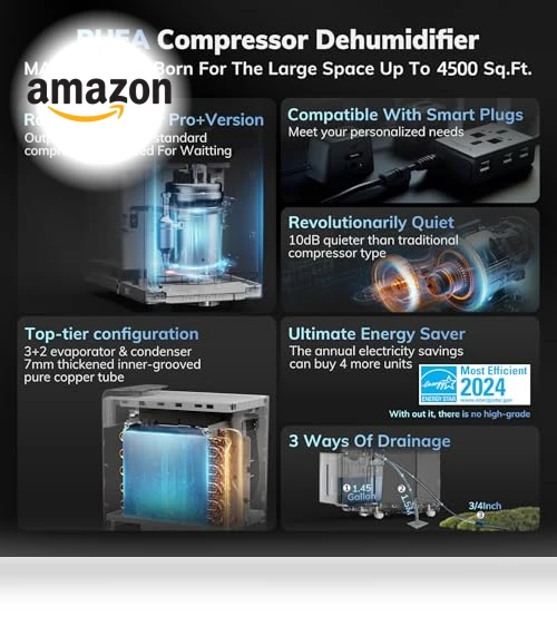 AEOCKY RHEA-001 Most Efficient Energy Star 2024 Dehumidifier: Most Efficient Energy Star 2024 Compressor Dehumidifier for homes over 4500 sq.ft