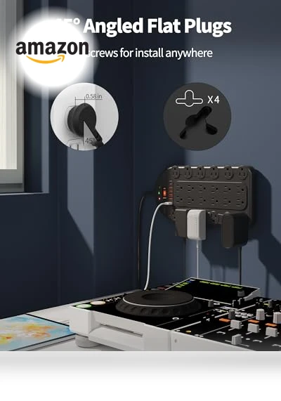 Safety first, right? This power strip is ETL listed and packs a 3400J surge protection punch to keep your electronics safe from those scary power spikes. And with its sleek black design and flat plug, it's basically the ninja of power strips—stealthy and powerful. Oh, and it's got a wall-mountable design with 4 mounting holes, because saving space is cool, whether it's in your home office, gaming den, or wherever you've set up your tech sanctuary.