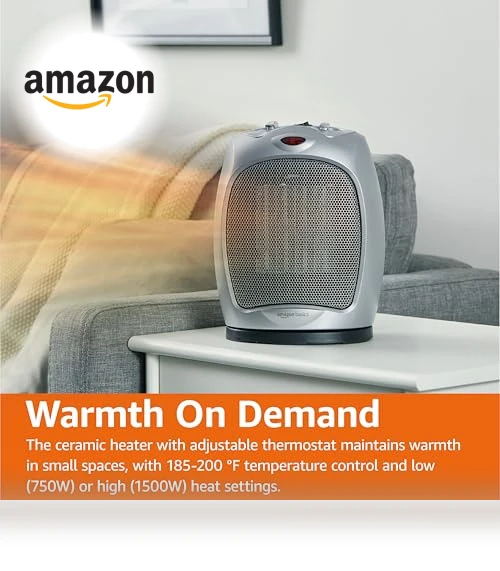 When the temperature drops, the Amazon Basics Oscillating Ceramic Space Heater has your back—literally, if you place it behind you. This little powerhouse is a game-changer for chilly home offices or those corners of your living room that your central heating forgot. With ceramic tech, it heats up fast, and you've got options: crank it to High (1500W) for instant warmth, dial it down to Low (900W) for a gentle hug of heat, or just let the Fan Only mode keep the air moving (because sometimes, you just need a breeze). And with its 45-degree swing, it's like having a personal warmth DJ, spreading the heat evenly. 🎚️