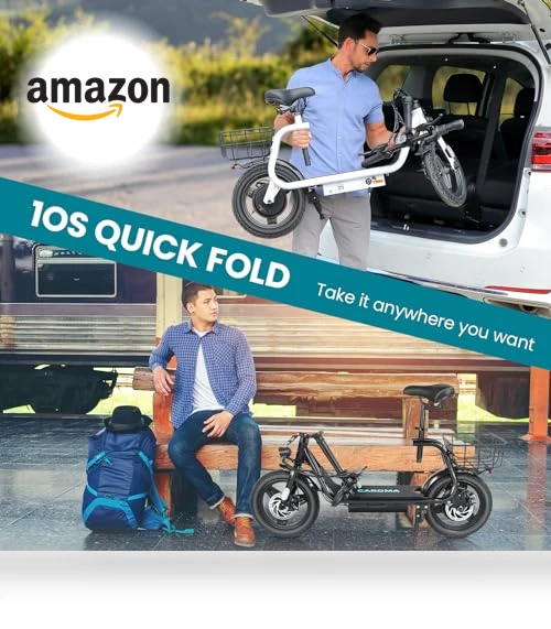 But wait, there's more! This scooter isn't just about getting from A to B; it's about doing it in style. Fold that handlebar down and tuck it away—no sweat. Its aluminum frame laughs in the face of 300 pounds, and that large capacity basket? Perfect for when you buy more than you planned at the store (we've all been there). Keep an eye on your juice with the LCD monitor, and when the sun dips, the high-brightness headlight and rear brake light have your back. Oh, and those front and rear disc brakes? They're not just for show.