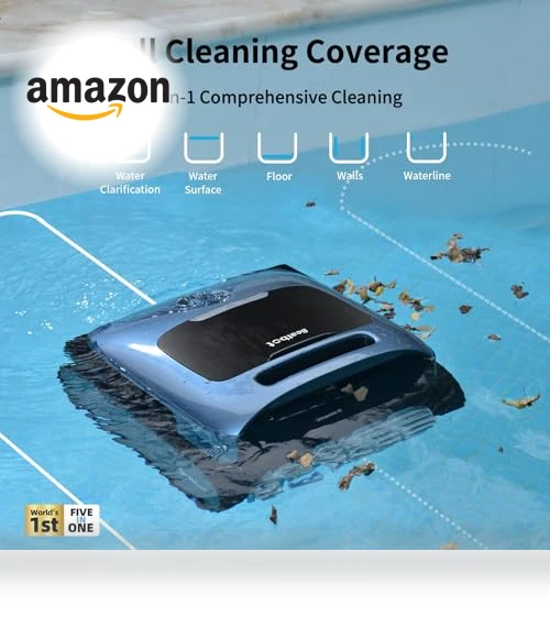 Meet the Beatbot AquaSense Pro Pool Robot Vacuum β not just any pool cleaner, but the world's first 5-in-1 robotic marvel that turns murky pools into crystal-clear paradises. π Imagine this: it's got this automatic clarifying tech that's like having a mini water treatment plant, zapping away dirt and oils faster than you can say 'pool party'. And the water surface cleaning? It's a game-changer, thanks to a clever dual propeller setup that hoovers up leaves and twigs like a hungry seagull.