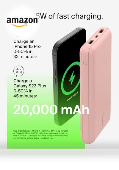 Need a quick juice-up for your gadgets? Our USB-C Portable Charger Power Bank 20K has got you covered—whether it's your smartphone, tablet, or any other PD-enabled device. With a USB-C port and a couple of USB-A ports thrown in for good measure, this Belkin powerhouse lets you charge up to three devices simultaneously. And yes, it's TSA-friendly, so no airport security will bat an eye. Plus, it comes pre-charged because, let's face it, nobody's got time to wait. Oh, and it's smart enough to stop charging when your device is full—because overcharging is so last decade.