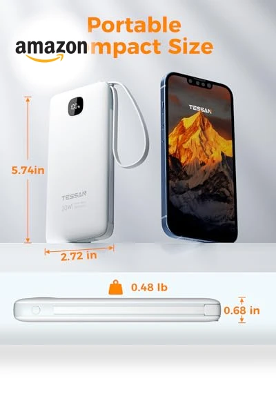 TESSAN TW1006-B Portable Charger with Built in Cables: Portable with built-in cables & wall plug