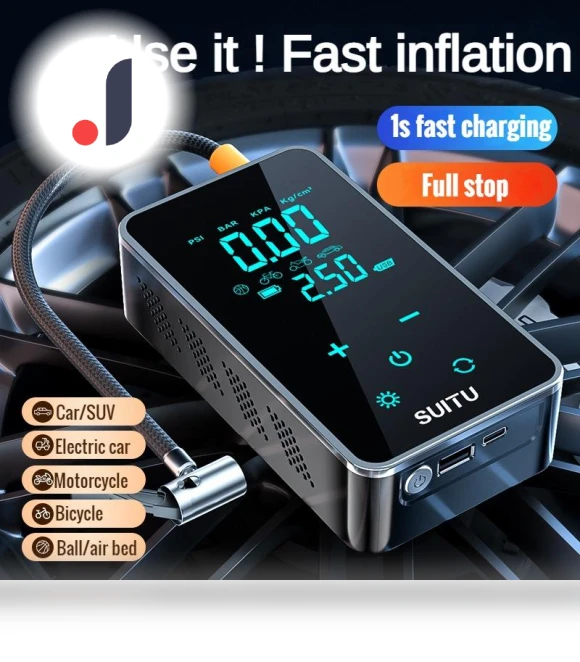 Meet the Portable Electric Smart Air Pump from Carsun—your go-to gadget for those "oops, my tire's flat" moments. Packing a punch with 150psi and a 3600mAh battery that's ready when you are, this little powerhouse doesn't care if you're driving a car, riding a motorcycle, or pedaling a bike. It's got you covered. And with its LED digital touch screen, you'll get real-time pressure readings that are so precise, you'd think it's showing off. Plus, its mini size means it'll tuck away in your car or backpack without a fuss (unlike that gym membership you never use).