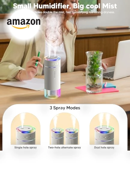 Meet the WSKEN Portable Small Humidifier—your secret weapon against dry air. It’s not just any humidifier; it’s got dual-nozzle technology that pumps out a generous cool mist. And with 3 mist modes, it’s like having a personal weather system for your space. Plus, the clean mist technology keeps the water pure, so every breath feels fresher (no weird smells here).