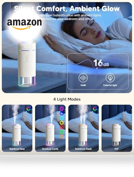 Quiet as a whisper—seriously, it’s under 16 decibels—so it won’t interrupt your sleep or that big meeting. The cool ambiance lighting? It’s got 4 modes to set just the right mood, from 'chill' to 'super chill.' And for those always on the go, the auto on/off smart car humidifier feature means you’re covered, literally, in comfort.