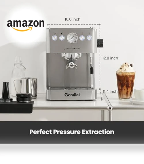 If you're the kind of coffee lover who won't settle for anything less than cafe-quality at home, meet your new best friend: the Gemilai Professional Espresso Maker. It's not just about looking good on your counter (though it does). With a 15 Bar pressure system and a 1500W water pump that means business, it's like having a professional barista in your kitchen—minus the attitude.