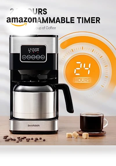 SHARDOR Drip Coffee Maker Programmable Coffee Maker with Thermal Carafe: 24-hour programmable timer