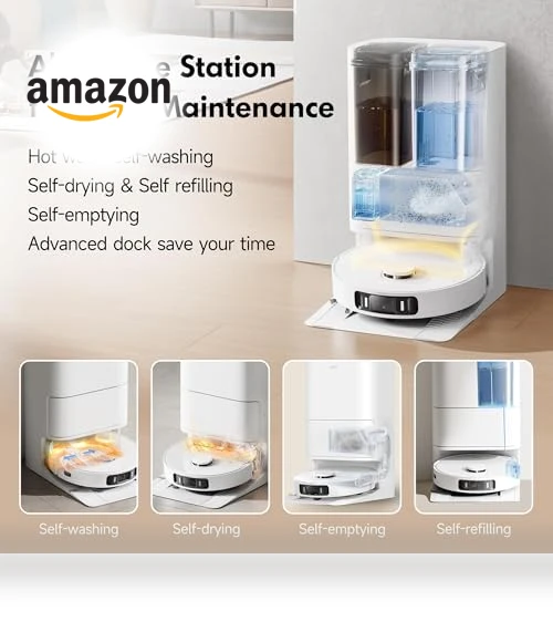 - Special Feature: 360°Recognition and Precise Object Avoidance, Pet-Friendly Robot Vacuum Home Clean Design, Easy-to-Use App and Third-Party Voice Control, Hot Water Auto Mop Washing, Auto Dust Collection, Auto Hot Air Mop Drying, 8300Pa Suction Power, Intelligent Dirt Detection, Auto Tank Refilling