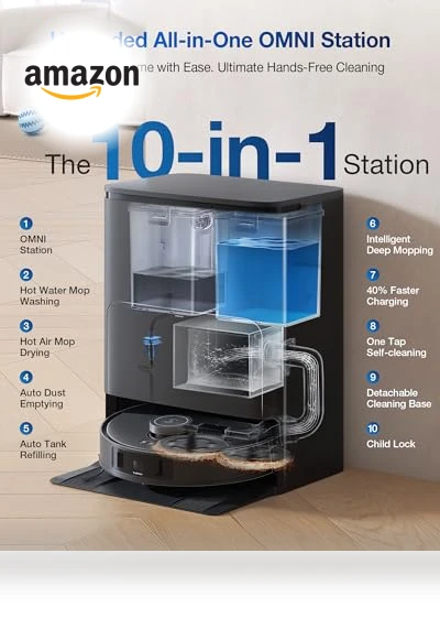But wait, there’s more. The all-in-one OMNI station is like the robot’s personal butler, offering 158°F hot water mop washing (because cold water just doesn’t cut it), self-emptying, and auto refilling. It’s so hands-off, you might forget you have a floor. And with TrueDetect 3D 3.0, it’s smarter than your average vacuum, dodging obstacles like a pro.