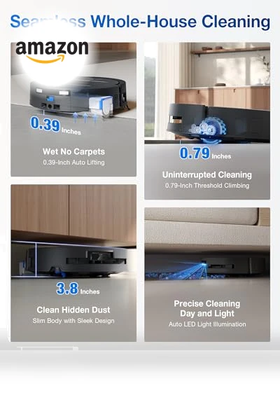 | Special Feature | OZMO ROLLER Instant Self-Washing Mopping | 11000Pa Unbeatable Suction, Upgraded All-in-One Station, Edge Cleaning, 158°F Hot Water Auto Mop Washing, Auto-Mop Lifting, Innovative ZeroTangle Technology, LiDAR Navigation, TruEdge Adaptive Edge Mopping Technology, Obstacle Avoidance, Voice Control, auto water refilling, hot-air drying, Self-Emptying | Innovative ZeroTangle Technology, TruEdge Adaptive Edge Mopping Technology | 3.19” Ultra-Slim, ZeroTangle 2.0, 15,000Pa Suction, AIVI 3D Obstacle Avoidance, TruEdge 2.0 | ||