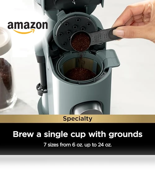 Meet the Ninja PB051SG Single-Serve Coffee Maker—your new best friend for whipping up coffee just the way you like it. Got pods? Grounds? No problem. This little powerhouse handles both, because who has time to choose between convenience and flavor? And speaking of flavor, pick your poison from 4 brew styles: go classic, get rich, chill with Over Ice, or get fancy with Specialty. Plus, it's not picky about size—whether you're craving a quick 6-oz. pick-me-up or a giant 24-oz. 'I need coffee now' mug, it's got you covered.