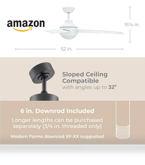 Whether it's indoors or in a covered outdoor space, the Airvana fan is ready to roll. It even handles sloped ceilings up to 32 degrees like a champ. Comes with a 6in downrod, but if you need something taller, we've got options.