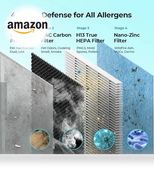 - Filtration System: 4-Stage H13 True HEPA Filter