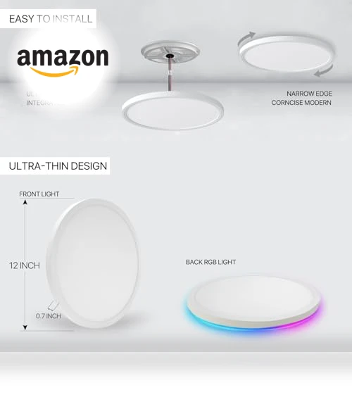 Ever wanted to give your home a tech-savvy makeover without sacrificing style? Meet the Smart LED Ceiling Light—your home’s new best friend. 🌈 Picture this: the main light doesn’t just brighten your room; it adapts, shifting from a cozy 2700K (think candlelit dinner) to a crisp 6500K (hello, morning energy). And that’s just the start. The RGB backlight? It’s like having a rainbow at your fingertips, with 16 million colors to set the mood. Whether you’re hosting a party or just chilling, control it all with a tap on the Tuya app or simply tell Alexa or Google Assistant to do the heavy lifting. 🎵 Feeling fancy? Sync the lights to your favorite tunes for an impromptu light show, or let timers handle your lighting so you don’t have to. Plus, with the circadian rhythm feature, it’s like bringing a slice of the outdoors inside, gently adjusting to mimic natural sunlight. 💡 And the best part? It’s a breeze to install and looks so sleek, your guests will be asking where you got it.