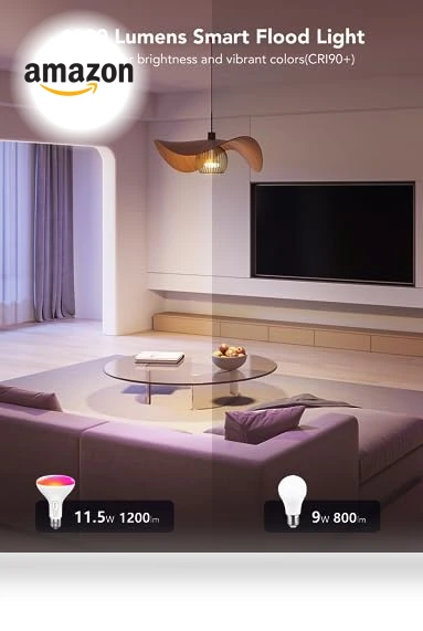 These bulbs aren't just smart; they're bright—1200 lumens bright, outshining your average 60W LED without breaking a sweat. Perfect for lighting up those bigger spaces, and with colors so vibrant (CRI90+, if we're getting technical), they'll make everything look better. Plus, you can boss them around with just your voice, thanks to Alexa or Google Assistant, or tweak settings to your heart's content in the app.