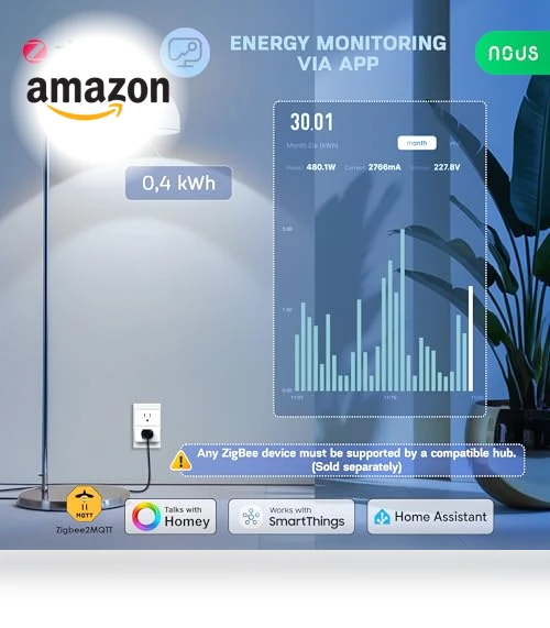 NOUS SPU013 Smart Plug with Energy Monitoring: ZigBee 3.0 smart plug integration
