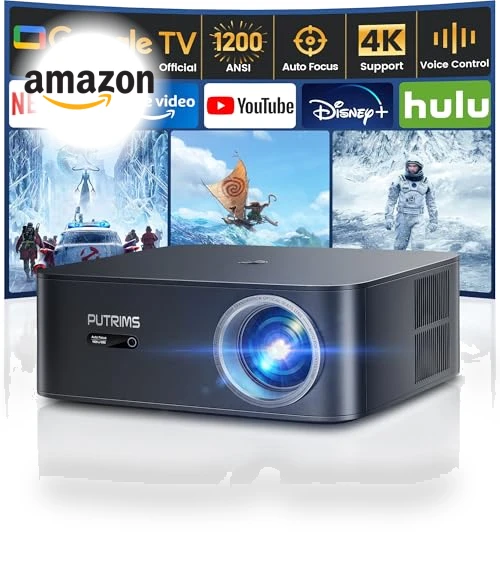 Meet the PUTRIMS K12 Smart Projector—your ticket to a seriously smart viewing experience. No more juggling remotes or squinting at dim screens. Thanks to its 2025 Officially licensed Google TV, you're one click away from diving into Netflix, Disney+, and pretty much any other streaming app you can think of. And hey, no app restrictions here. Plus, with the Google Voice Assistant, just say the word and it’s like having your own personal cinema butler. (Okay, maybe not butler, but close enough.)