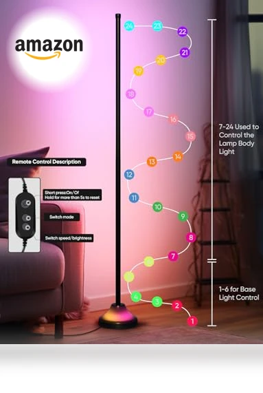 | Included Components | Remote Control, On-Off Switch | Corner Floor Lamp, Remote Control | Remote Control | RGB Floor Lamp * 1, Remote Control * 1, Power Adapter * 1, Instruction Manual * 1 | ||