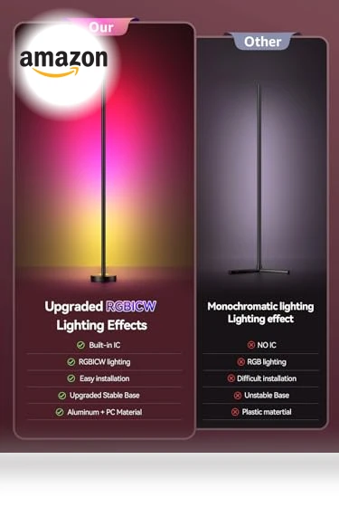 OIYN LZ-1201000B Smart RGBICW LED Corner Floor Lamp: Dynamic RGBICW Color Technology