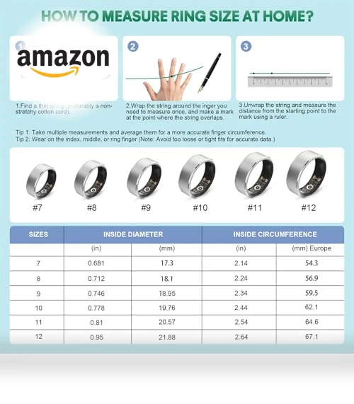 BANGALORE VR12 Smart Ring Health Fitness Tracker: 24/7 health monitoring