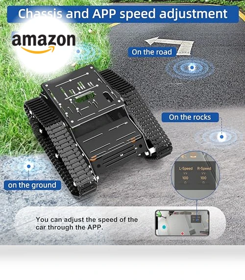 But wait, there's more! With ultrasonic and infrared sensors, this kit isn't just smart—it's practically psychic. Avoid obstacles, follow lines, or chase objects (not the cat, please). And when it comes to programming, you've got options: XR Block (Scratch 3.0) for the visual learners and Arduino IDE for those who like to get their hands dirty with code. Plus, the all-metal tank chassis means it's tough enough to handle whatever you—or your kids—throw at it, on almost any surface.