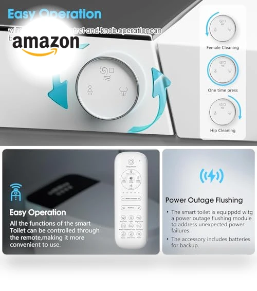 - Then there's the Smart Technology. A remote control makes tweaking settings a breeze, and because life's full of surprises, there's an emergency flush for those pesky power outages.