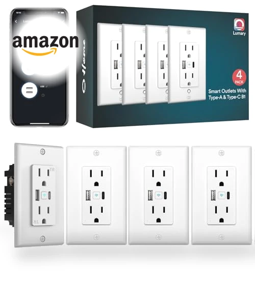 Lumary L-WOSC-100 Smart Wall Outlet with Type C & USB Charger Ports: Voice control with Alexa and Google Home