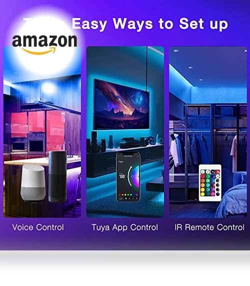 | Included Components | 1 x remote control | 2 x 50ft LED strips, 1 x power adapter, 1 x IR receiver, 1 x 20-key music remote | light strips, infrared remote and receiver, 24-volt power supply, instruction manual | |||