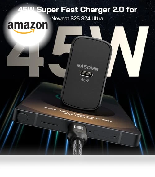 Ever been stuck with a dead phone right when you need it most? The 45W Super Fast Charger Type C is here to save your Samsung devices (and your sanity) with lightning-fast charging, thanks to the latest PPS tech. Imagine juicing up your Samsung Galaxy S25 Ultra to half battery in just 20 minutes—yeah, that’s quicker than your morning coffee brews. And a full charge? Done in under an hour. Whether you’re rocking a Galaxy S, Note, or Tab S8, this charger’s got your back.