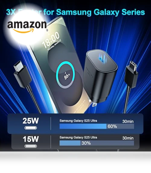 Ever been in a rush and your phone's at 5%? Our charger laughs in the face of low battery, zipping your Samsung Galaxy from 0% to 60% in just 30 minutes. That's faster than you can decide what to watch on Netflix.