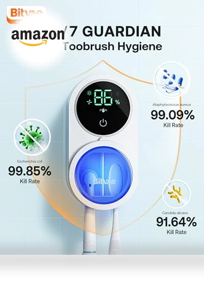 Bitvae Toothbrush Cleaner & Holder - LED Smart Screen, Rechargeable Wall Mount