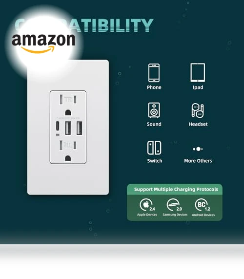 Looking to give your space a tech-savvy upgrade? Meet the USB C Wall Outlet—your new best friend for keeping gadgets juiced up without the clutter. It’s not just any outlet; it packs a 15A Tamper Resistant Receptacle and 3 USB Ports (yep, 1*Type C & 2*Type A) that deliver a whopping 5V DC, 6.0 Amp, 30W in total. Whether you’re team Apple, Samsung, or just about anything else, this bad boy supports a bunch of protocols (including Standard BC1.2) so everyone gets a piece of the fast-charging pie.