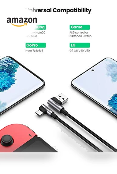 UGREEN 20855 USB to USB C Cable 90 Degree Fast Charging Cord: 90 Degree USB C connector