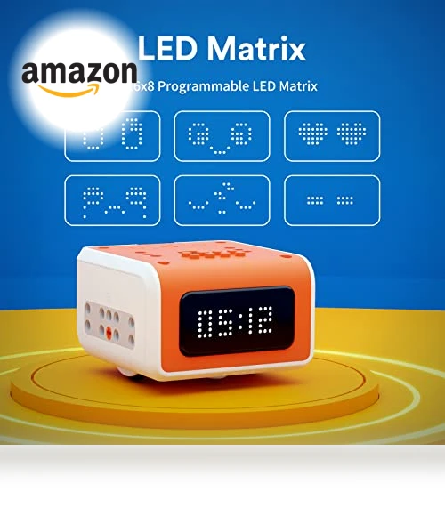 Now, let's talk features (because this little guy is packed with them). First off, it's got a stepper motor so precise, it could probably draw a straight line in a hurricane. Then there's the line-following tech—think of it as the robot's way of saying, 'I got this.' And with an 18x6 LED panel, it doesn't just move; it expresses itself. Animations, emotions, you name it. Plus, with AI support via Tiny ML, it's like having a mini tech genius in the house. And because we know kids love to build, it plays nice with Lego blocks. Endless creativity? Absolutely.