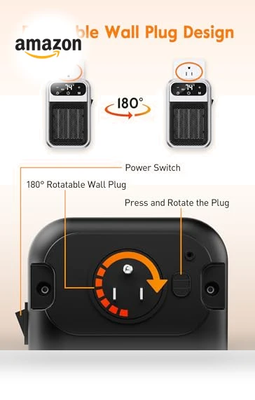 Now, let's talk features—because this heater's got some nifty tricks up its sleeve. First off, it's kind to your wallet with its 800-watt low energy consumption. Who says you can't stay warm without burning through your electricity bill? Plus, with a remote control and LED display, you can tweak the temperature from your couch like some kind of heating wizard. And that 180° rotatable plug? Genius. No more awkwardly bending your outlet to fit.