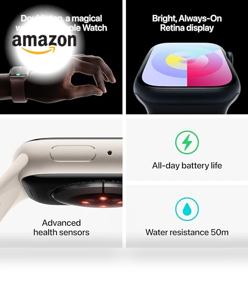 Meet the Apple Watch Series 9 – your not-so-secret weapon for staying on top of your health game, now cranked up a notch. Thanks to the S9 chip, it's not just smart; it's practically psychic, with a display so bright it could guide you home in a fog. And get this: you can now give your watch a little 'double tap' to get things done, no screen poking required. It's like having a tiny assistant on your wrist, minus the attitude.