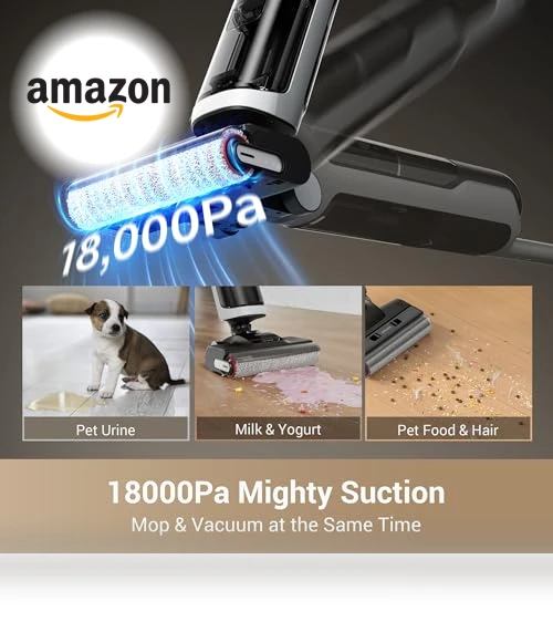 - special_feature: Edge Cleaning on Both Sides, 140°F Hot Water Brush Washing & Dual Rotation Self-Cleaning, Solid-Liquid Waste Separation, 5 Mins Sealed Hot Air Drying, 180° Lie-Flat Reach, 18,000Pa Powerful Suction