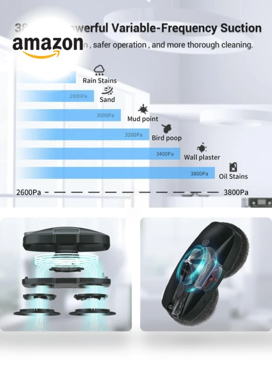Ready to ditch the elbow grease? Meet the FMART T9Pro Window Cleaning Robot 🚀—your new best friend for spotless windows, tiles, and mirrors. Thanks to its Ultrasonic Atomization Technology, it leaves behind nothing but a streak-free shine. And with 3800PA Intelligent Variable Frequency Suction, it's smart enough to crank up the power when things get dirty (because let's face it, they do). Plus, with AI Path Planning and Edge Detection, it won't miss a spot—unless you count the one behind the fridge, but that's on you.