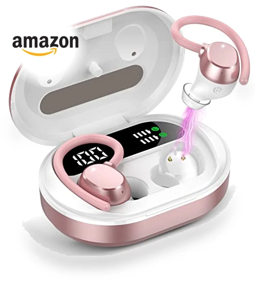 SPRTOYBAT Q35-R Wireless Earbuds with Dual LED Display: Designed for Sports with secure-fitting silicone ear hooks
