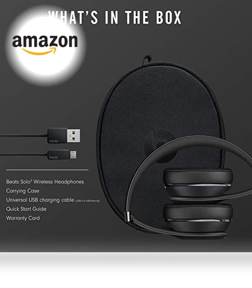 📦 Inside the box, you'll find the Beats Solo3 Wireless headphones (obviously), a carrying case to keep them safe, a 3.5mm RemoteTalk cable for those 'just in case' moments, a Universal USB charging cable, a Quick Start Guide (for the impatient among us), and a Warranty Card (because peace of mind is priceless).